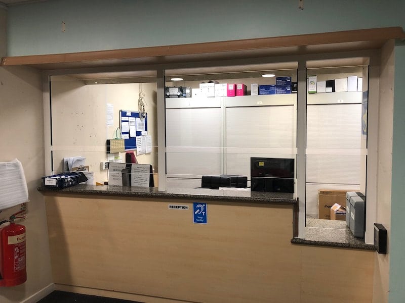 Removal of existing door and installation of a new aluminium door and frame complete with Record DFA 127 automation and wave to open activation to a Hospital in Chelmsford, Essex.